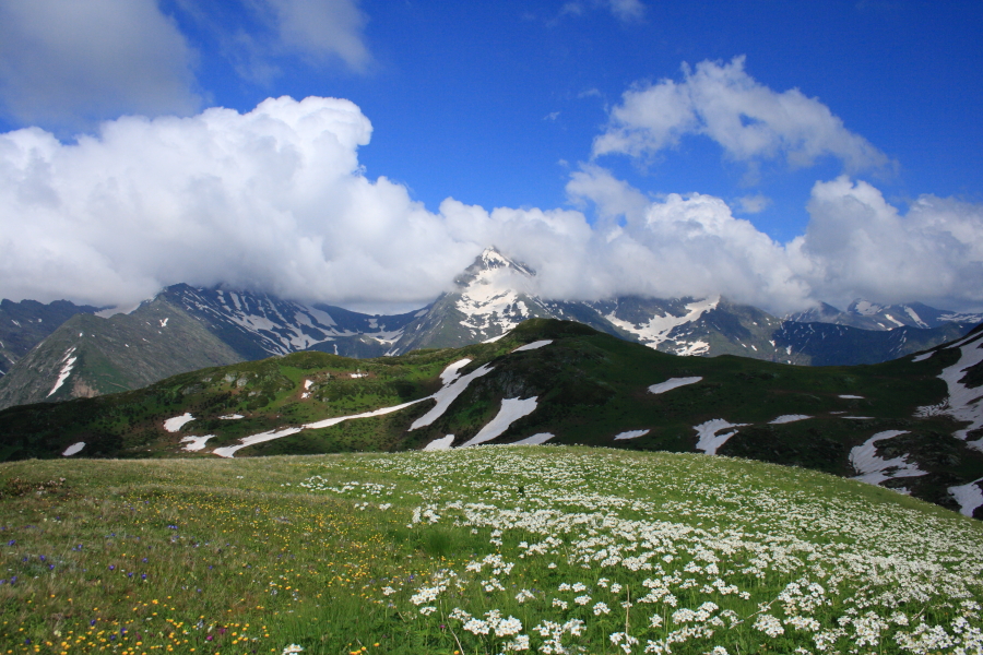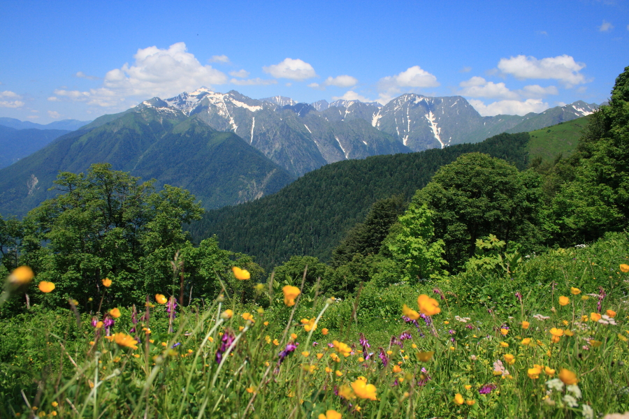 Ранний подъем и радиальный выход в красочную, цветущую долину Псеашхо и к Малому озеру (остановка для купания), далее в озерную долину Дзитаку. Купание в озерах по желанию. Пеший переход к лагерю Холодному и под ледник Холодный. Обратный путь вечером. Ночевка на Карнизе. Протяженность пешей части пути – 22 км.